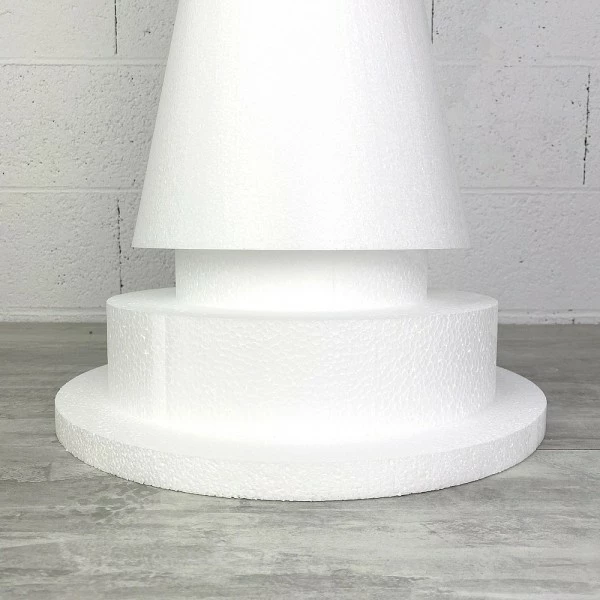 Ces cônes sur socle en polystyrène d’une hauteur de 60 cm ont la forme idéale pour servir de supports dans la confection des pièces montées de macarons. Il sont fournis avec des disques ronds de différents diamètre/épaisseur. Cette base permet le montage des macarons et surélève la pièce montée. Elle est très pratique pour déplacer l’ensemble terminé. Hauteur totale74 cm