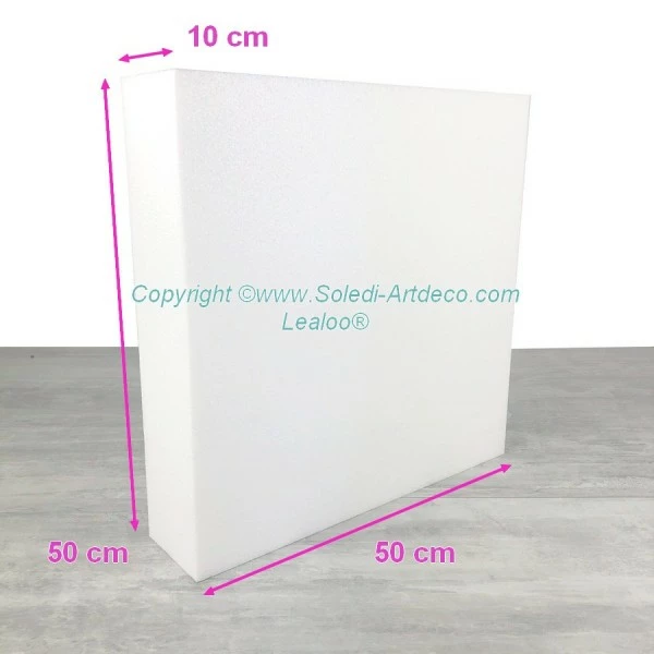 Description de Grand socle Carré 50×50 cm, Haut. 10 cm, en polystyrène, Dummy Pavé en Styropor blanc densité pro