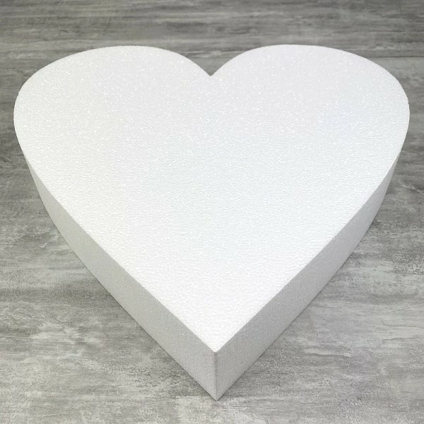 Description de Grand Socle plat Coeur 2D de 45 cm en polystyrène blanc, Largeur 45 cm x Epais. 7cm, 28 kg/ m3, pour