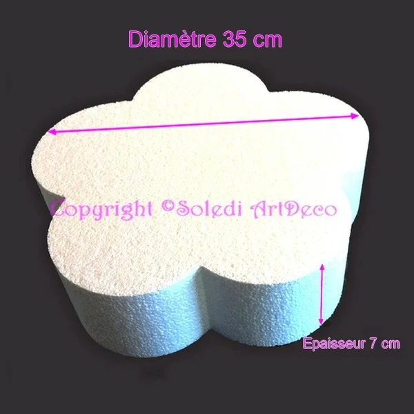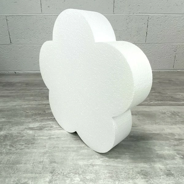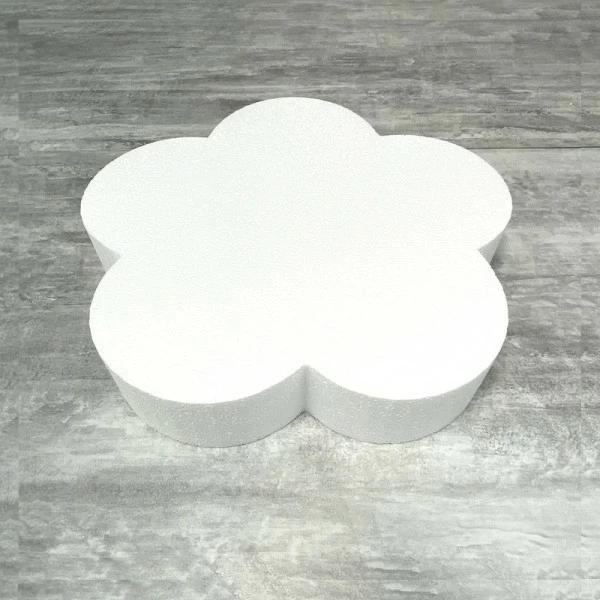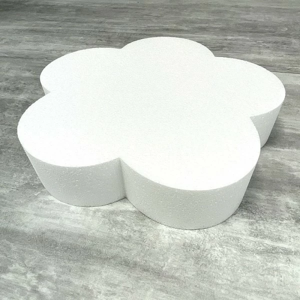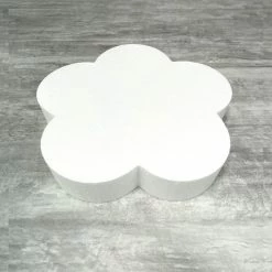 Description de Grand Socle plat Fleur 2D en polystyrène blanc, Diamètre 35 cm x Epais. 7cm, Support pour centre de