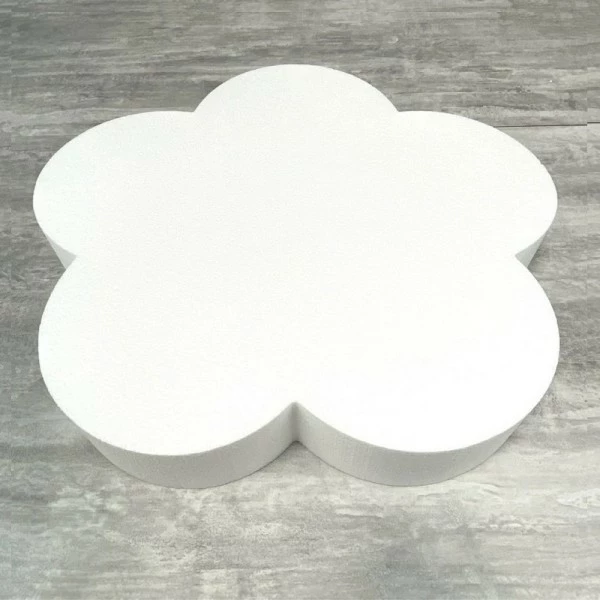 Description de Grand Socle plat Fleur 2D en polystyrène blanc, Diamètre 45 cm x Epais. 7cm, Support pour centre de