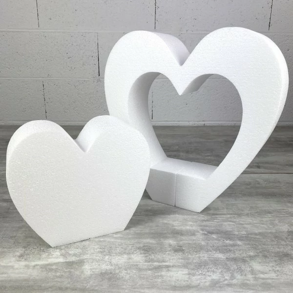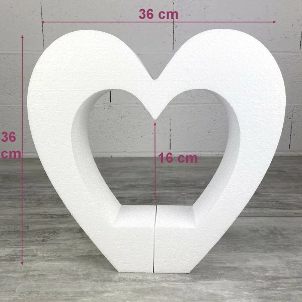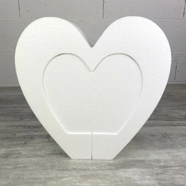 Description de Grand support en polystyrène double Coeur, 36 x 36 cm, intérieur creux, 2 parties