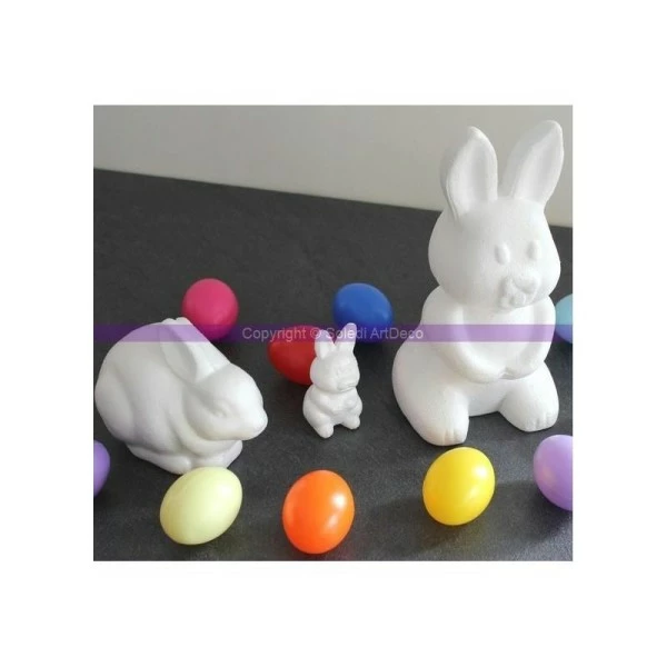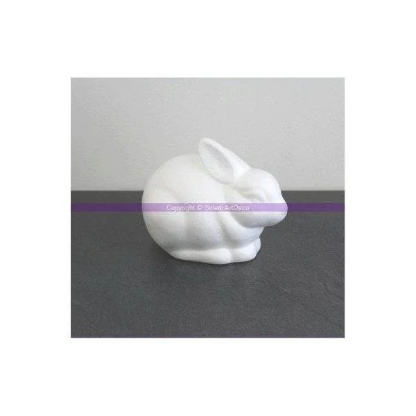 Description de Lapin couché en polysryrène, Longueur 14 cm, hauteur 8 cm