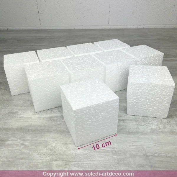 Description de Lot de 10 cubes en polystyrène, 10 cm, Blocs en Styropor blanc à décorer