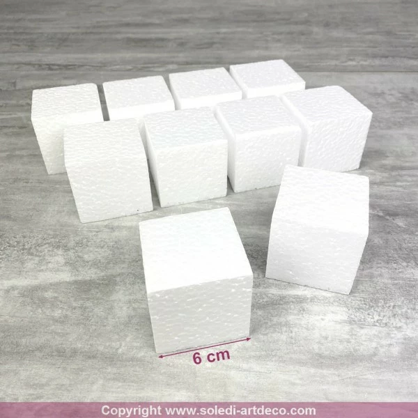Description de Lot de 10 petits cubes en polystyrène, 6 cm, minis Blocs en Styropor blanc à décorer