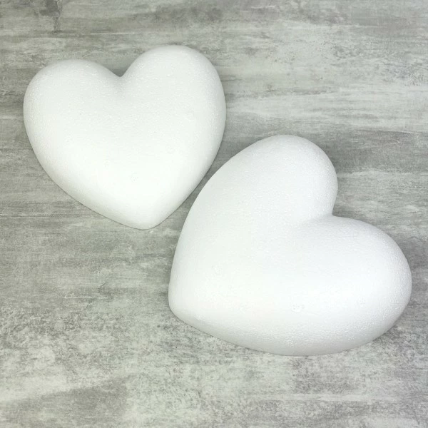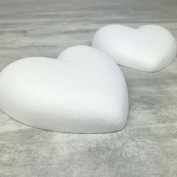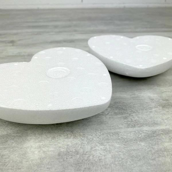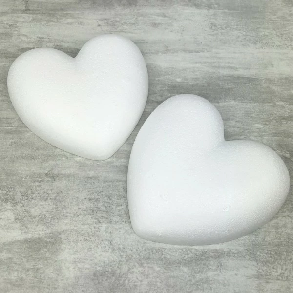 Description de Lot de 2 Coeurs bombés en polystyrène, Largeur 15 cm, Épaisseur 3,7 cm, Fond plat