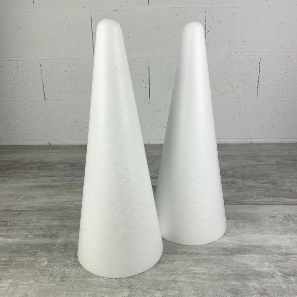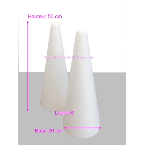 Description de Lot de 2 Cônes en polystyrène plein, Hauteur 50 cm, Présentoir à macarons, Diamètre de base 20 cm, S