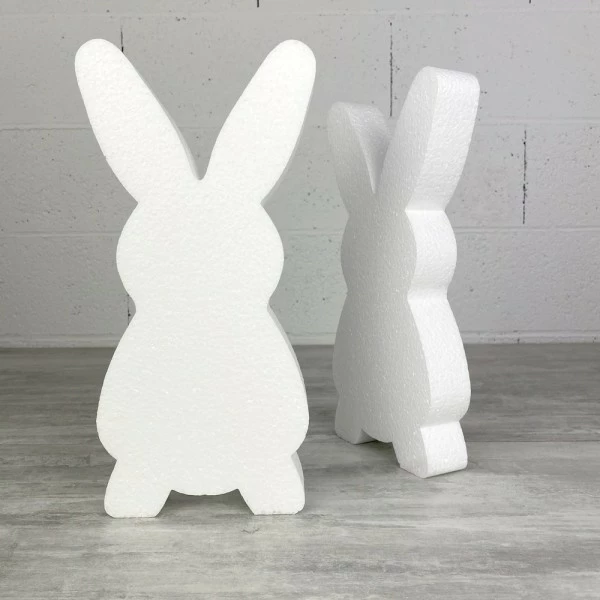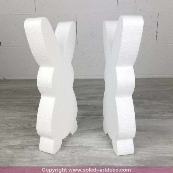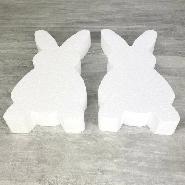 Description de Lot de 2 lapins en polystyrène, haut. 31 cm, épais. 3,9 cm, grande silhouette 2D, pâques