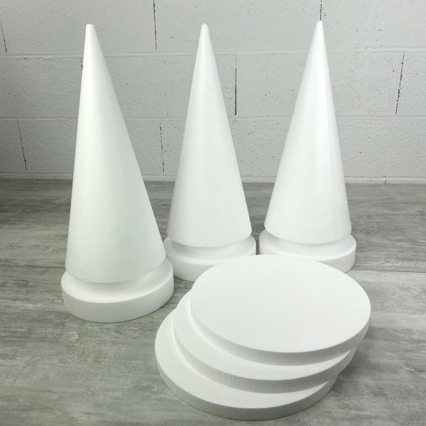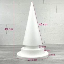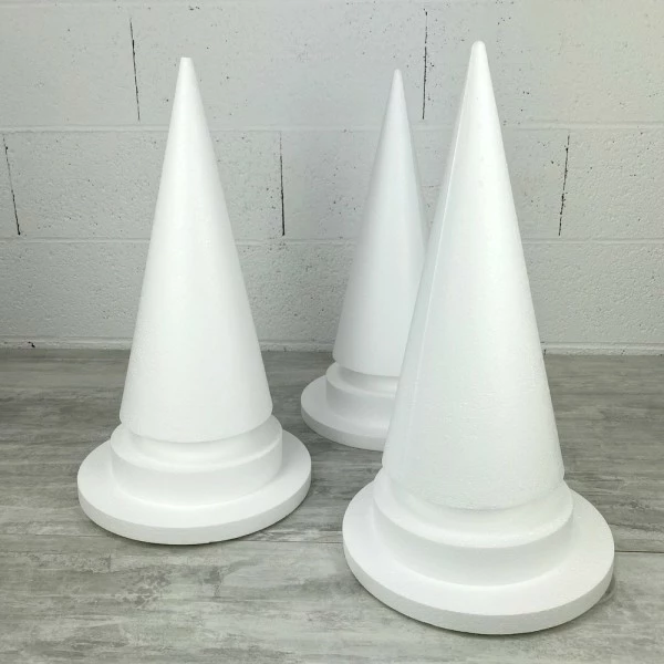 Description de Lot de 3 Cônes en polystyrène à pied, h. 49 cm avec supports, base 27,5 cm, à décorer