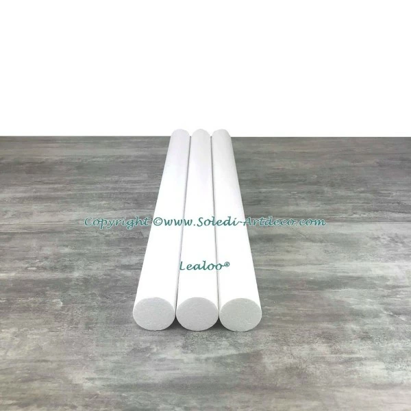 Description de Lot de 3 cylindres diam. 6 cm x Longueur 80 cm, en polystyrène, Colonnes en Styropor blanc pour prés