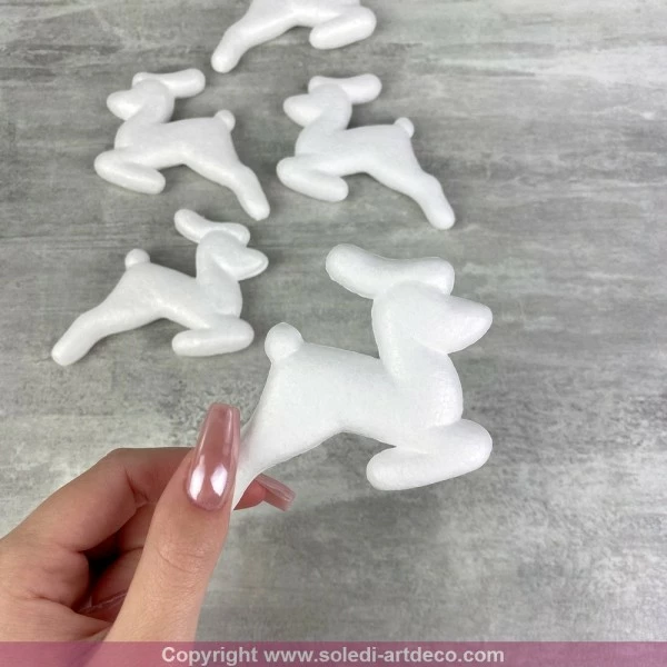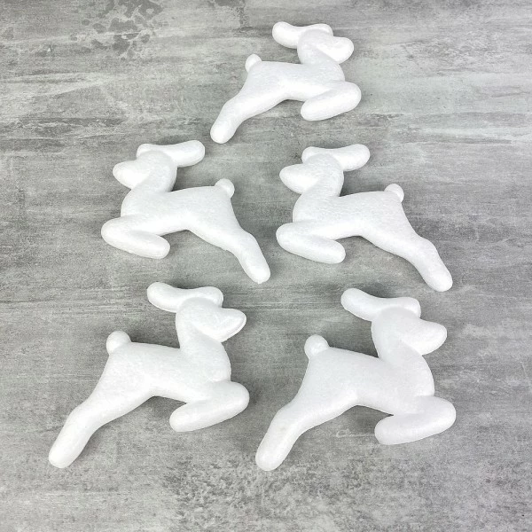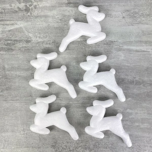 Description de Lot de 5 petits rennes en polystyrène, dim. 9 cm, déco table sapin de noël cerf