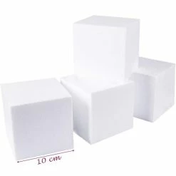 Description de Lot de 6 petits blocs en Polystyrène, dimensions du cube. 10 x 10 x 10 cm, cubes support carré à déc