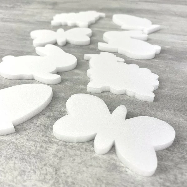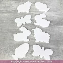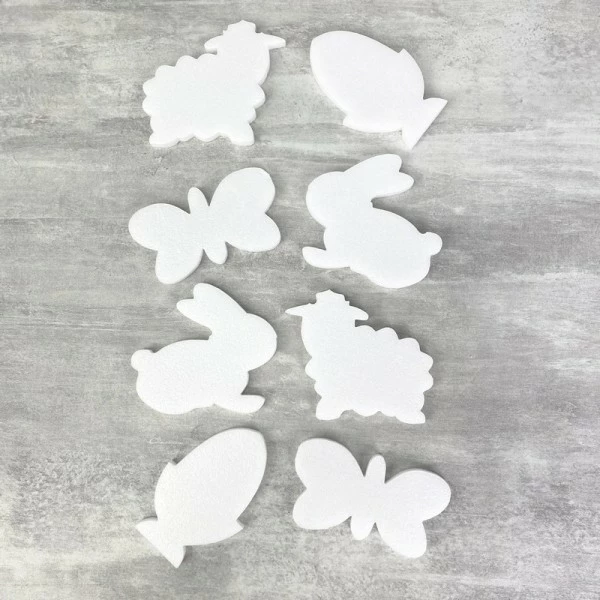 Description de Lot de 8 motifs animaux en polystyrène, environ 7 cm, décoration printanière à customiser