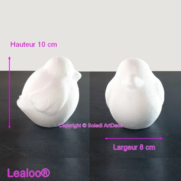 Oiseau dodu en polystyrène, hauteur 10 cm, Diamètre 8 cm