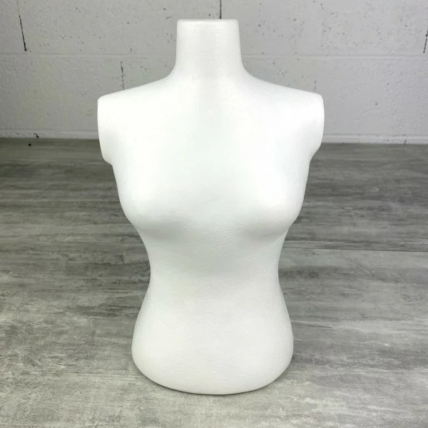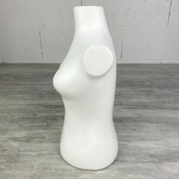 Description de Petit Buste Mannequin Femme, haut. 30 cm, torse en Polystyrène plein, Larg. 18cm, Prof. 13cm
