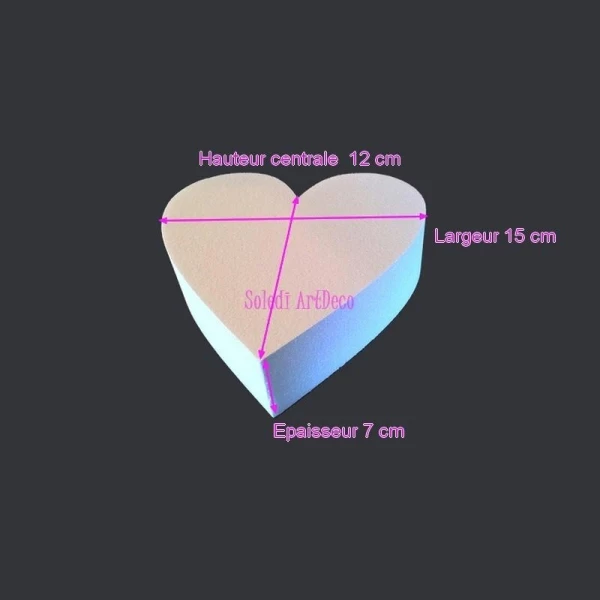 Description de Petit Socle plat Coeur 2D en polystyrène blanc, Largeur 15cm x Epais. 7cm, 28 kg/ m3, pour ce