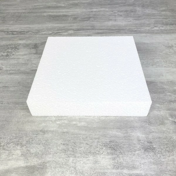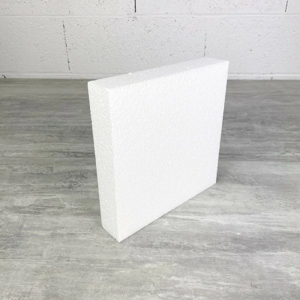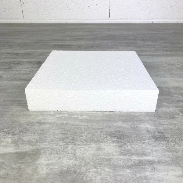 Description de Socle Carré en polystyrène, 20×20 cm, haut. 4 cm, Dummy support Pavé en Styropor blanc densité pro