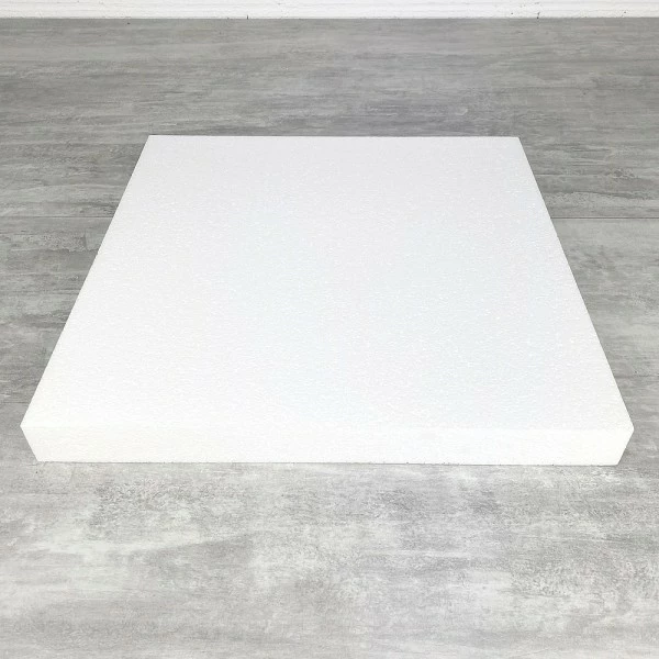 Description de Socle Carré en polystyrène, 40×40 cm, haut. 4 cm, Dummy support Pavé en Styropor blanc densité pro