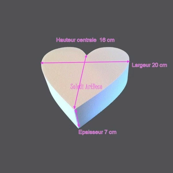 socle plat coeur 2d en polystyrène blanc, largeur 20cm x epais. 7cm, 28 kg/ m3, pour centre de table