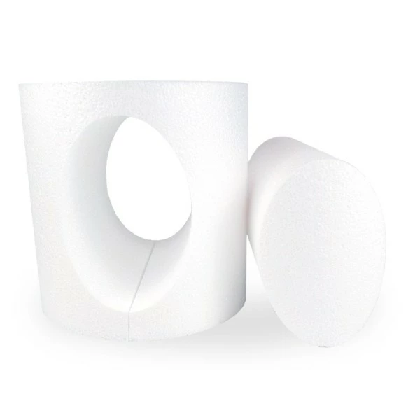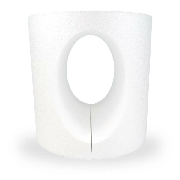 Description de Support en polystyrène ouverture ovale, 15 x 15 cm, intérieur creux, 2 parties