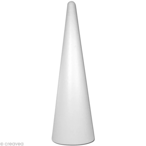 Cône géant de 80 cm à décorer selon vos enviesutilisez-le en support pour piquer des macarons en pièce-montée, transformez-le en sapin de Noël design en le recouvrant et le piquant de sequins, peignez-le, recouvrez-le, bref amusez-vous en famille à décorer ce cône de 80 cm en polystyrène !