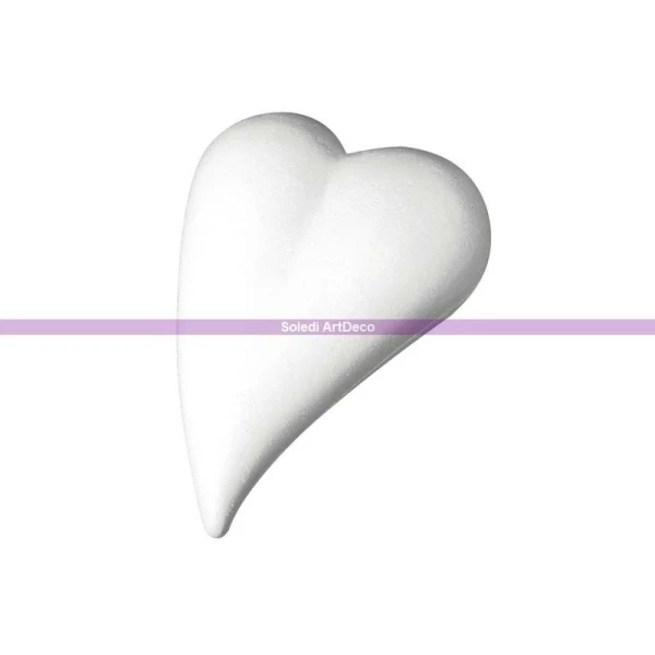 Description de Coeur allongé en polystyrène, Forme Goutte, 12 x 8,5 cm, plat