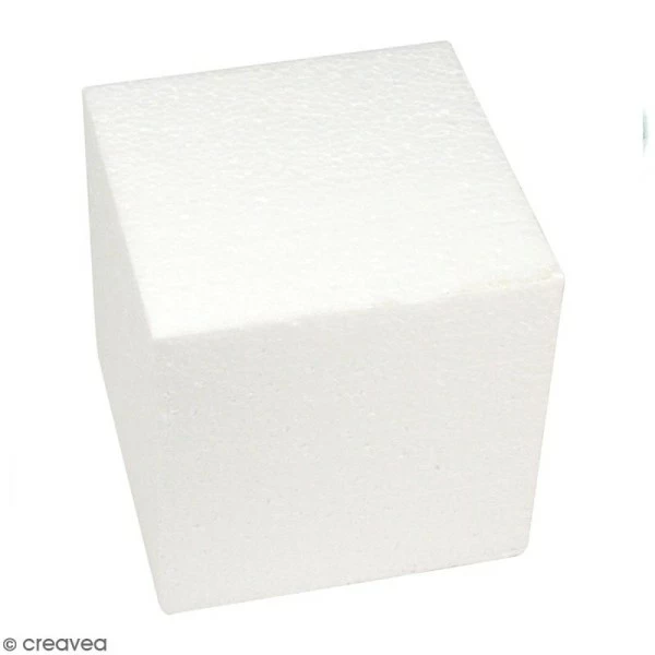 Cube de 15 cm en polystyrène à décorer selon vos envies ! Personnalisez ce Cube avec de la peinture, des sequins ou recouvrez-le de tissu. Tout est permis avec le Cube en polystyrène de 15 cm ! Vous pouvez même en acheter plusieurs pour les empiler et réaliser ainsi de belles structures décoratives en polystyrène !