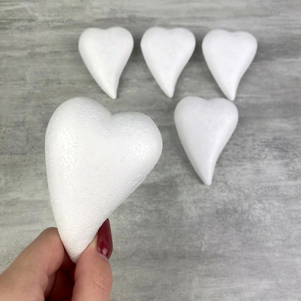 Description de Lot de 5 Petits Coeurs allongés en polystyrène, Forme Goutte, 8×5,5 cm, bombé