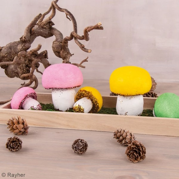 Description de Lot de champignons en polystyrène à décorer – De 5 à 7,5 m – 5 pcs